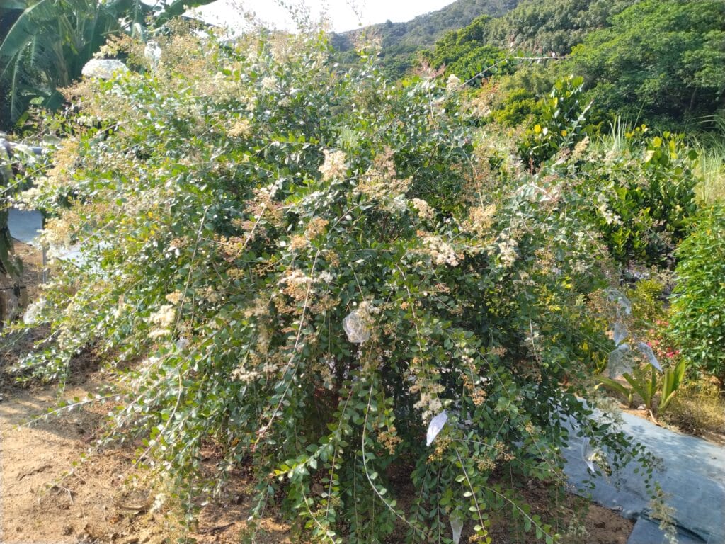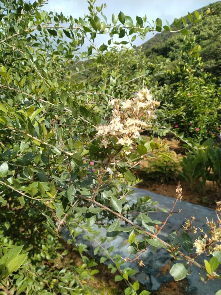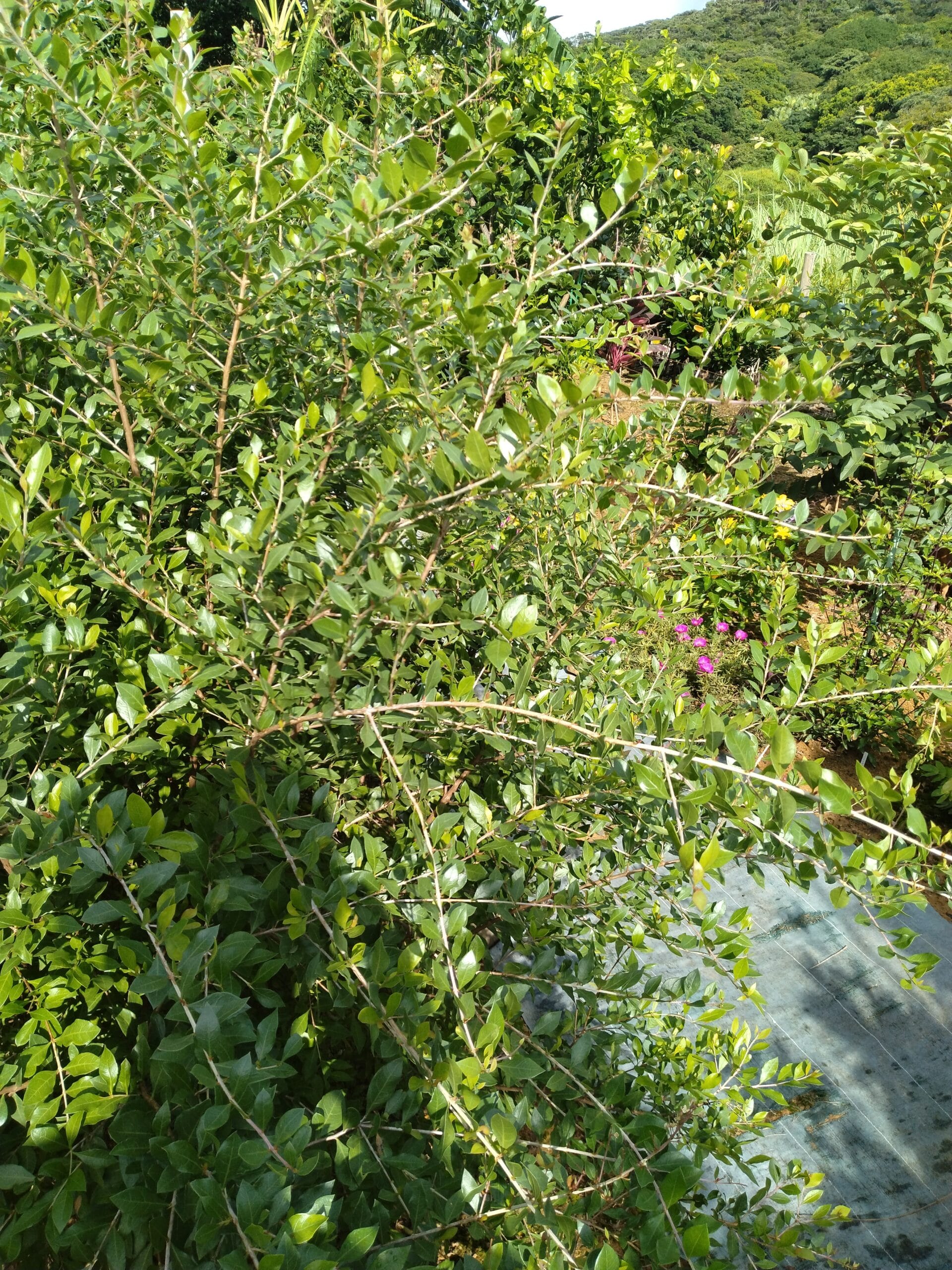 遡る事、2年前に沖縄産のヘナの苗を分けて頂き、奄美大島の地で自然農法にて成長を見守って参りましたが、今、現在、背丈は2m程にまでスクスクと育ちました(一度、活性化を促す為、根元付近から刈り込んだ事がありましたが、そこからも順調に成長して今に至ります)。